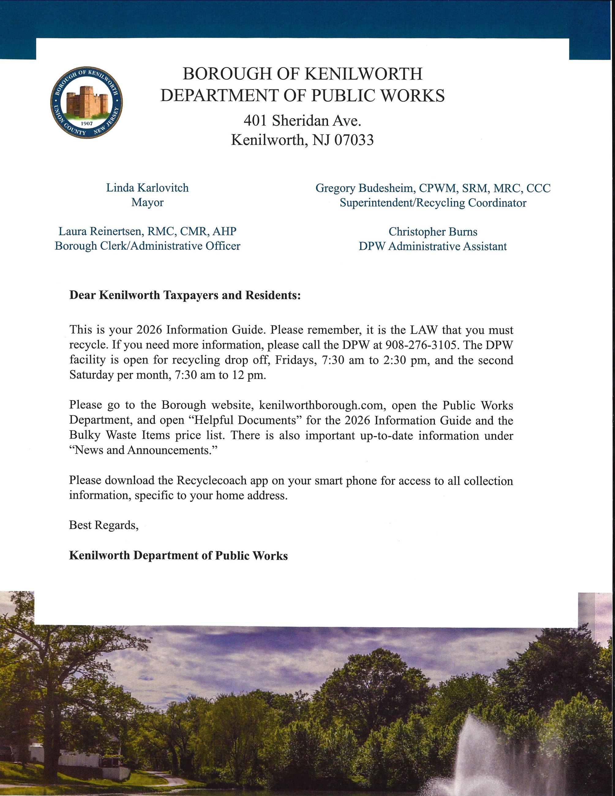 The Borough of Kenilworth looks forward to successfully implementing this Shared Service Agreement and reaping the rewards that come from a collaborative community effort.